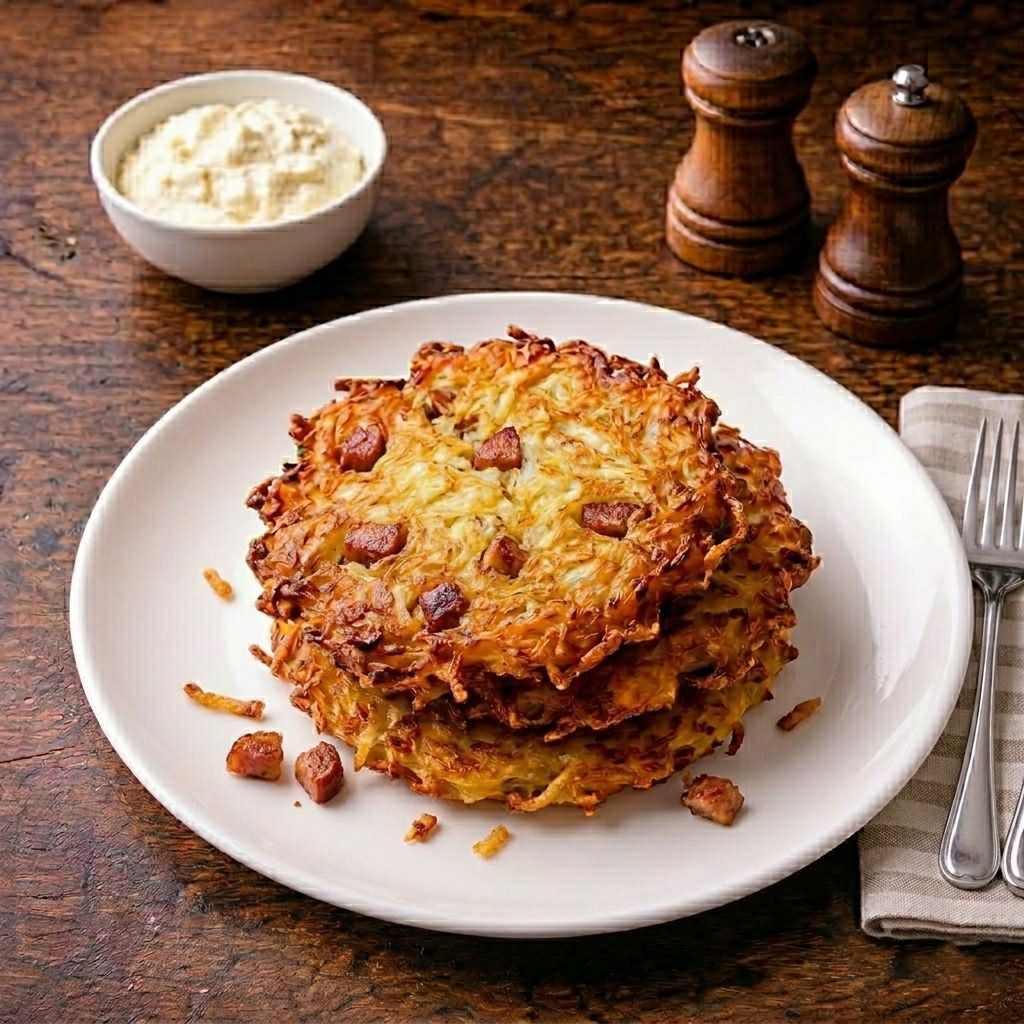 Bramborák doplněný uzeninou, která mu dodá výraznější chuť a udělá z něj sytější jídlo. Oproti klasice je plnější a víc "poctivý".