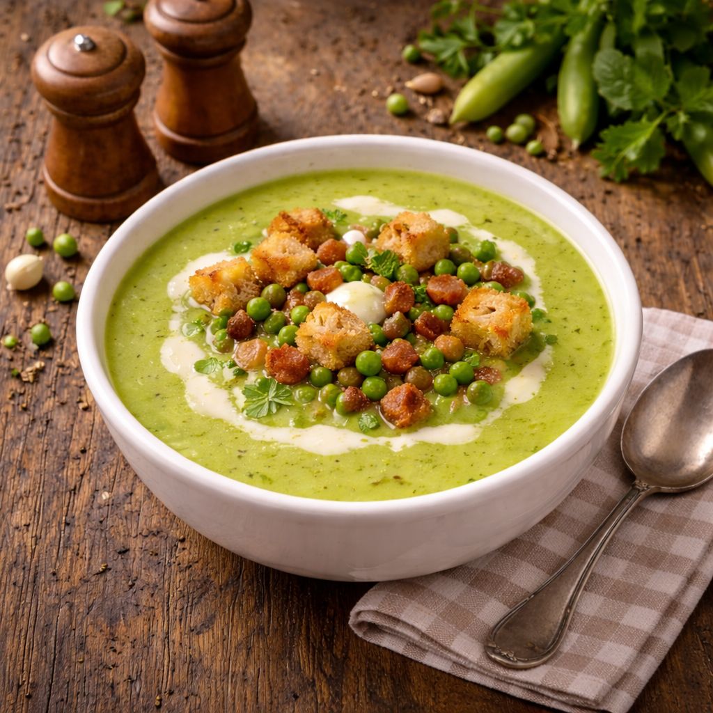 Hráškový krém je polévka, která vypadá jednoduše, ale stojí na přesném načasování. Když se udělá správně, je jemný, lehce nasládlý a krásně zelený. Jakmile ho převaříš, ztratí barvu i chuť a výsledek bude mdlý.