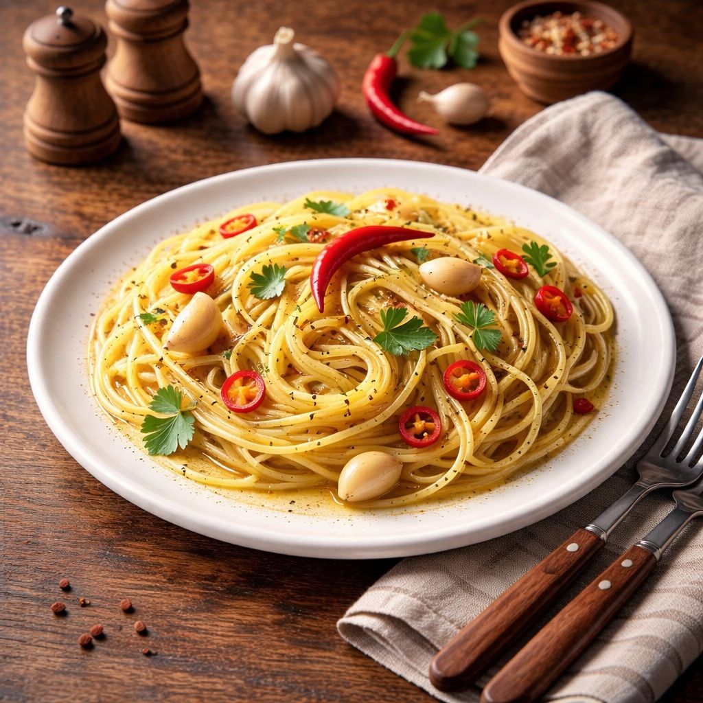 Spaghetti Aglio, olio e peperoncino je typické jídlo z jižní Itálie, původem z oblasti Kampánie. Vzniklo jako jednoduché a levné jídlo "z ničeho", ale díky kombinaci česneku, olivového oleje a pálivé papričky získalo kultovní status. To dělá z tohoto receptu stálici nejen v italských domácnostech, ale i po celém světě.