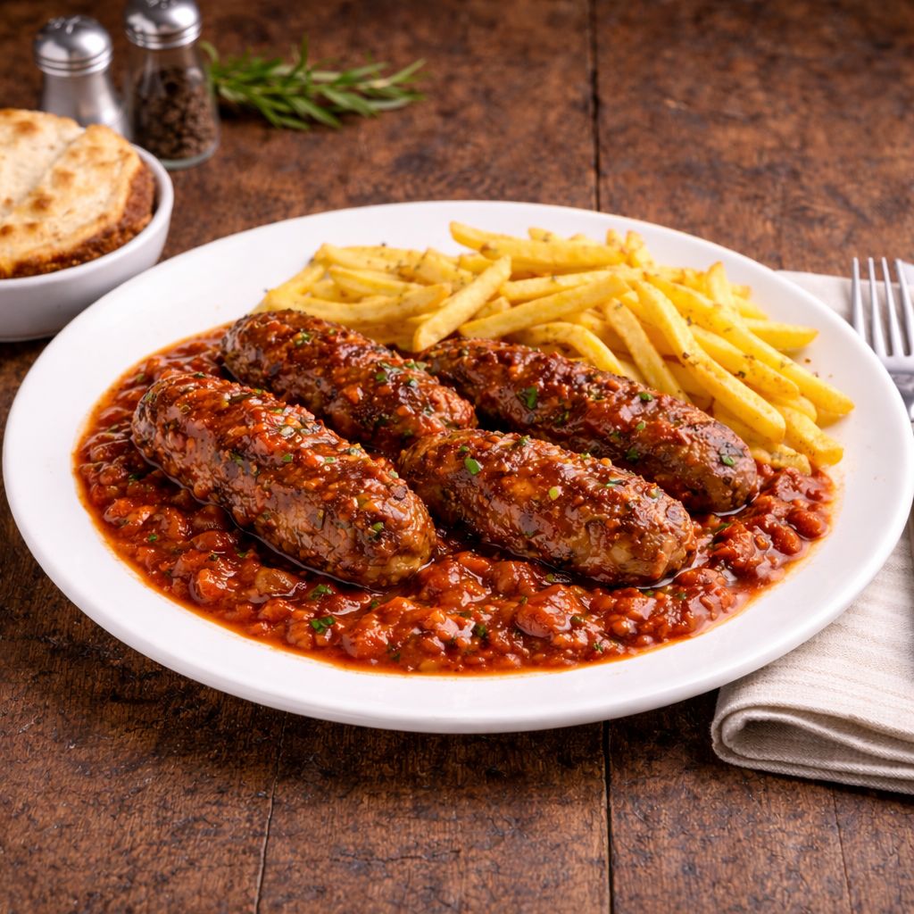 Tradiční řecké jídlo z mletého masa podávané v rajčatové omáčce. Válečky jsou výrazně ochucené a díky omáčce šťavnaté, což z nich dělá syté jídlo typické pro řeckou kuchyni.