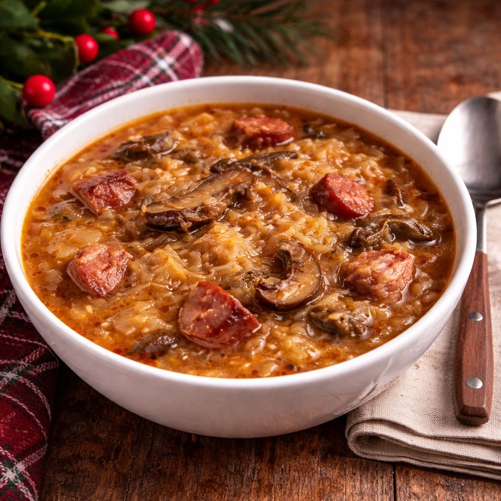Silná, poctivá Slovenská vánoční kapustnica s kysaným zelím, uzeným masem a klobásou. Tenhle recept vychází z tradiční slovenské klasiky, ale je upravený pro běžné domácí vaření – bez zdlouhavého vaření uzeného masa, zato s plnou chutí díky uzenému bujonu.