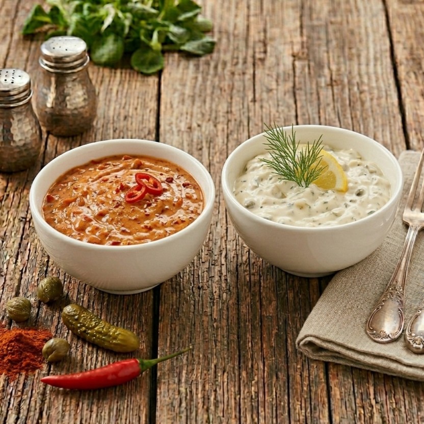 Tatarská nebo ďábelská omáčka? Dvě klasiky ke smaženým jídlům, které chutnají úplně jinak. Jedna je jemná a svěží, druhá výraznější a lehce pikantní. Pokud váháš, kterou zvolit, tady máš jasno.
