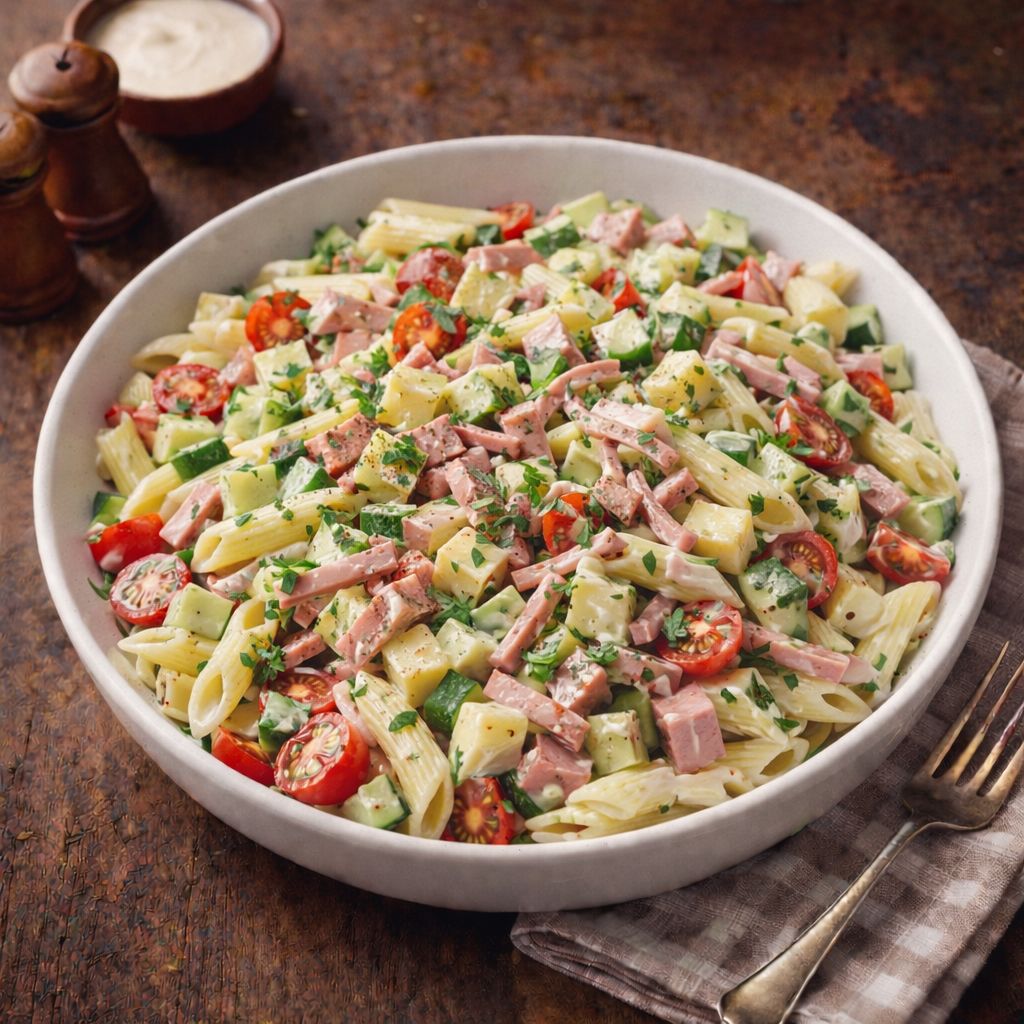 Těstovinový salát se šunkou a sýrem