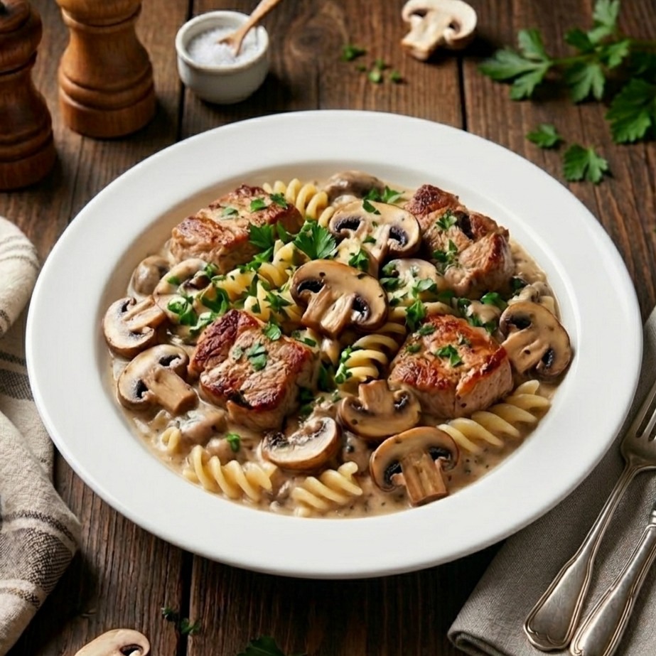 Jednoduché, poctivé jídlo, které stojí na pomalém dušení masa, cibulovém základu a výrazné chuti hub. Přesně ten typ receptu, který funguje bez složitostí, ale musíš dodržet pár klíčových věcí, jinak z toho bude jen průměr.