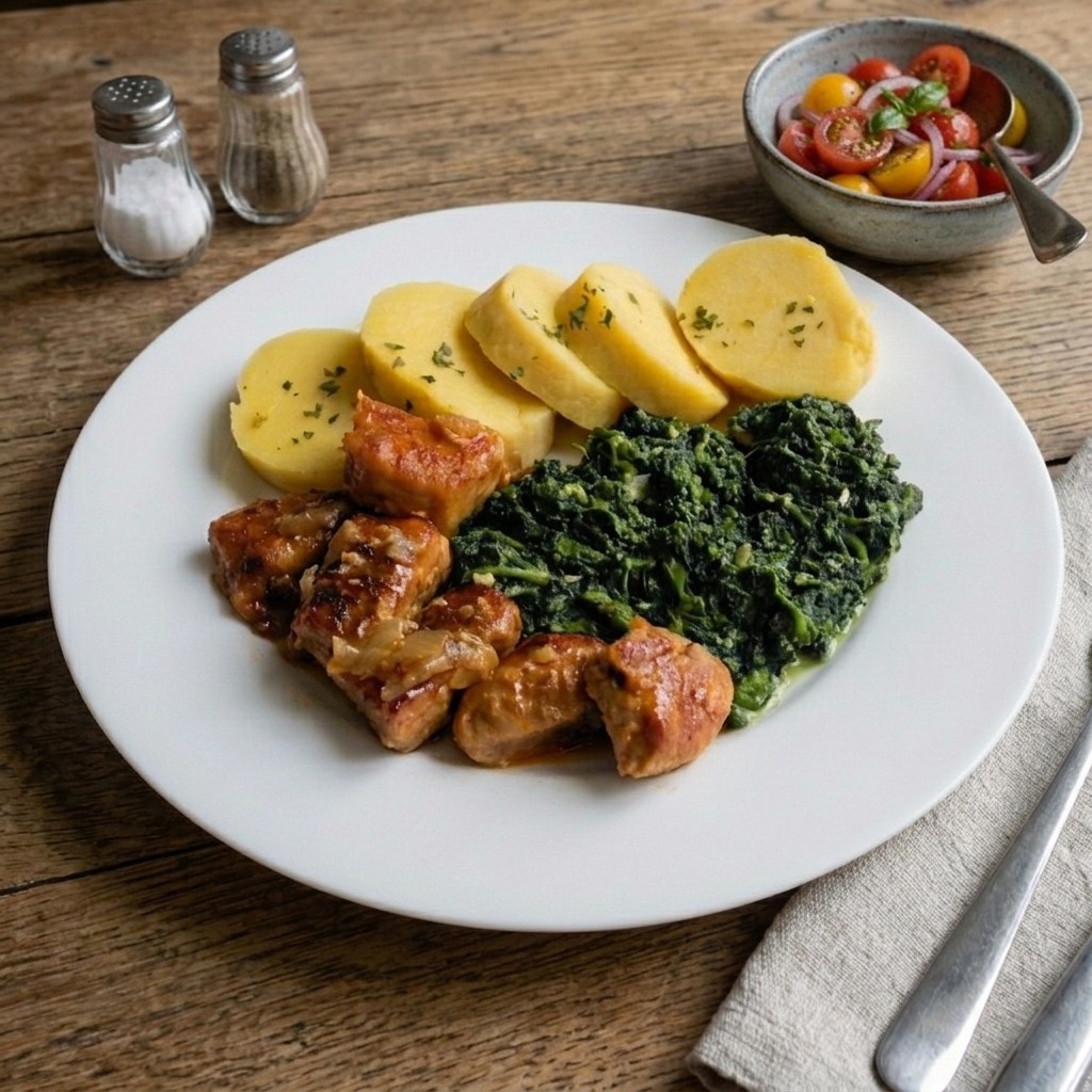 Poctivá česká klasika, kde rozhodují detaily. Správně upečené maso musí zůstat šťavnaté, špenát nesmí být vodový a knedlík jen doplňuje celek, ne ho zachraňuje. Tohle je verze, která funguje v reálné kuchyni bez zbytečných kroků a bez "instagramových" úprav.