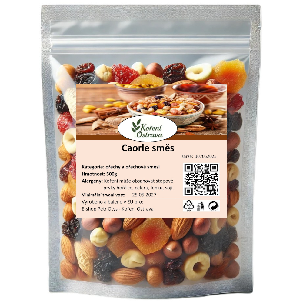 Objevte lahodné ořechové směsi, které spojují to nejlepší z přírody – křupavé ořechy, sušené ovoce i kousky čokolády. Každá směs je pečlivě sestavená tak, aby potěšila chuťové buňky a dodala tělu přirozenou energii kdykoliv během dne. Ideální jako zdravá svačina, doplněk k snídani, do práce, na cesty nebo jen tak k večernímu mlsání. V nabídce najdete sladké i slané varianty, pražené směsi bez soli, ale i kombinace s čokoládou, jogurtem či ovocem sušeným mrazem. Všechny naše produkty jsou baleny s důrazem na čerstvost, kvalitu a zachování přirozené chuti. Vyzkoušejte třeba Fitness mix, Tropickou směs nebo Caorle – oblíbené kombinace, které vás překvapí svou harmonií chutí i vůní.
