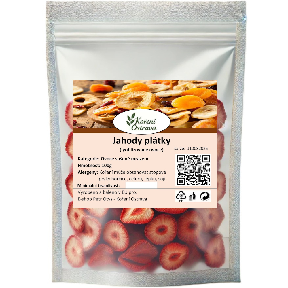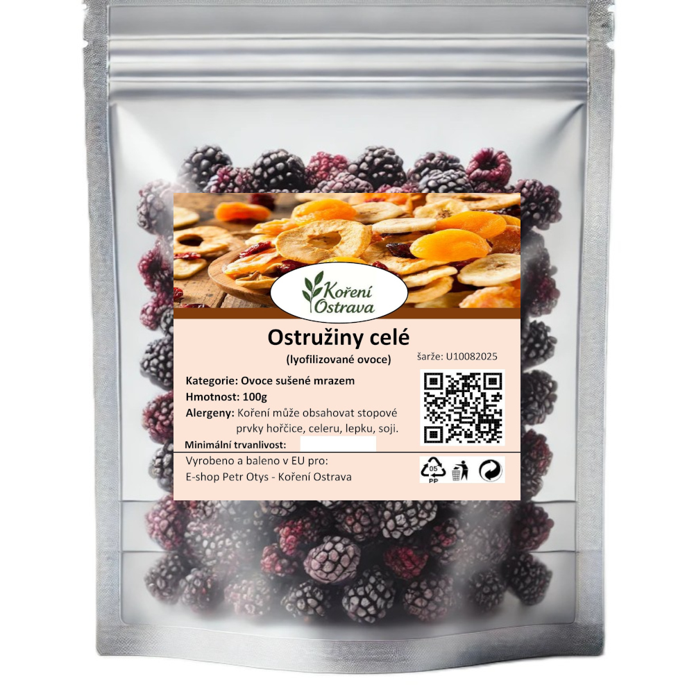 Ovoce sušené mrazem (lyofilizované ovoce) je zdravá a chutná svačina bez přidaného cukru, barviv a konzervantů. Díky šetrnému procesu lyofilizace si zachovává přirozenou barvu, vůni, tvar i maximum vitaminů, minerálů a antioxidantů. Tento druh sušeného ovoce je lehký, křupavý a připravený k okamžité konzumaci. Skvěle se hodí do jogurtů, kaší, müsli, smoothie, dezertů, při pečení nebo jen tak na mlsání. V naší nabídce najdete jahody, maliny, borůvky, mango, banán a další ovoce sušené mrazem v nejvyšší kvalitě. Dopřejte si kousek léta po celý rok – vyberte si z naší široké nabídky lyofilizovaného ovoce a ochutnejte rozdíl.