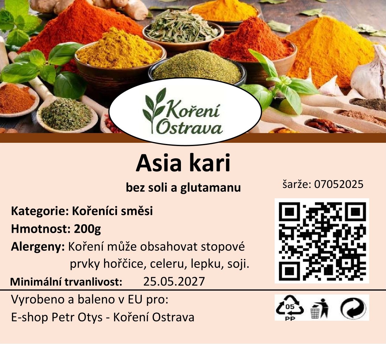 Kořenící směs Asia kari – bez soli a glutamanu je univerzální a čistě přírodní směs koření inspirovaná asijskými kuchyněmi – zejména indickou, thajskou a srílanskou. Neobsahuje sůl ani glutaman, takže si intenzitu a slanost můžeš doladit podle vlastního vkusu.