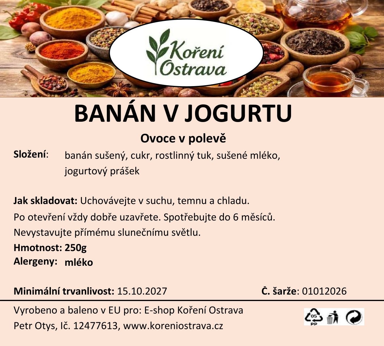 Popis a chuť: Banán v jogurtu spojuje sladkou chuť sušeného ovoce s jemně kyselkavou jogurtovou polevou, která vytváří lahodný kontrast chutí. Jogurt dodává banánu příjemně krémovou a svěží notu, zatímco banánové kousky zůstávají sladké, měkké a přitom lehce křupavé. Je to skvělá pochoutka pro chvíle, kdy máte chuť na něco sladkého, ale zároveň ne příliš těžkého.