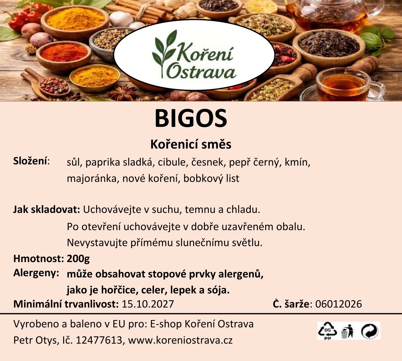 Směs koření Bigos je specialita, která se používá při přípravě tradičního polského jídla nazývaného bigos. Bigos je zelňačka s masem, obvykle s kysaným i čerstvým zelím, a různými druhy masa, jako je vepřové, hovězí nebo zvěřina. Koření, které se používá v bigosu, zahrnuje typické ingredience pro polskou kuchyni. Pokud koupíš směs koření Bigos, obvykle obsahuje suroviny, ale někdy i další přísady, které mohou záviset na výrobci nebo regionálních variacích. Směs koření je určena pro snadnou přípravu bigosu, aby jídlo mělo bohatou a vyváženou chuť.