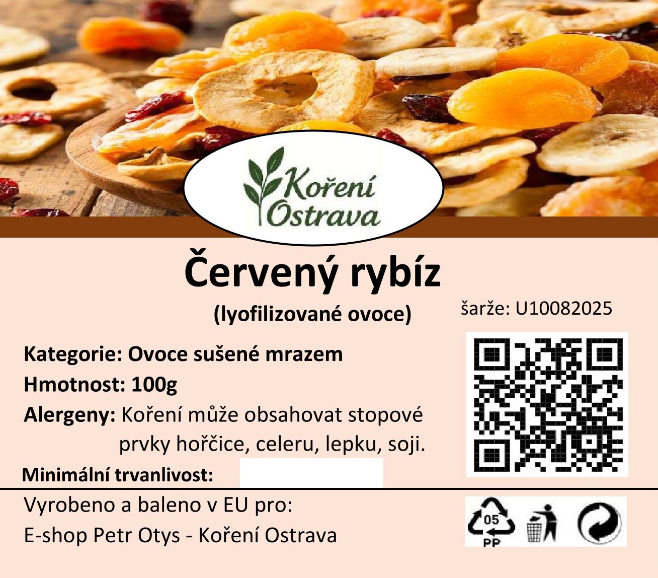Červený rybíz (Ribes rubrum) je sušený mrazem, aby si zachoval přirozenou chuť, barvu i maximum živin. Díky procesu lyofilizace zůstává lehký a křehký, s výrazně osvěžující chutí.