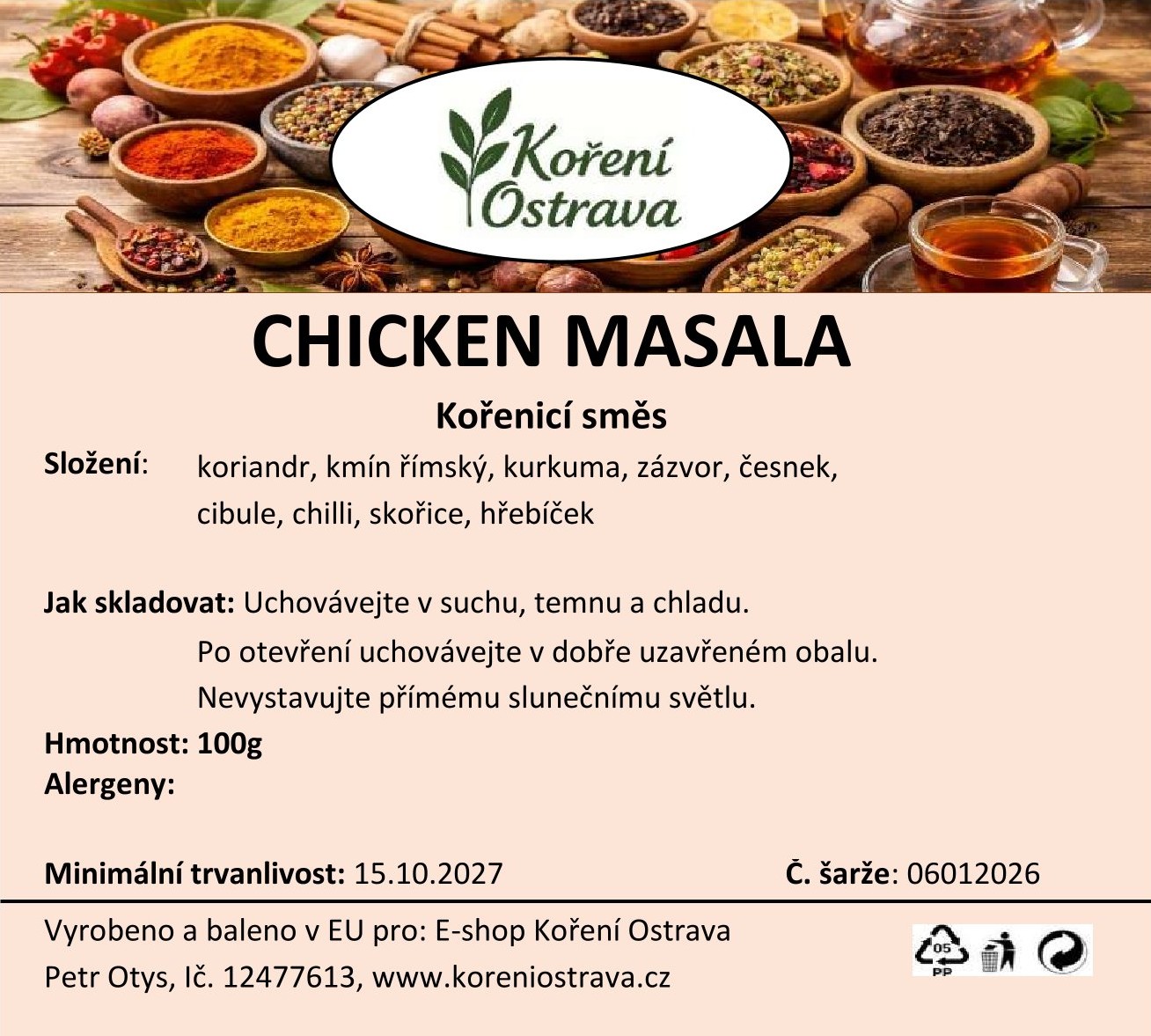 Vyrobeno a baleno v EU pro: E-shop Koření Ostrava