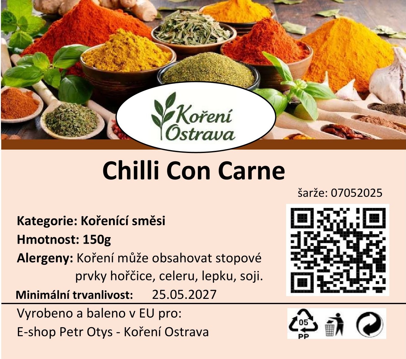 Chilli Con Carne – směs koření (Condimentum Tex-Mex) je pikantní kombinace tradičních mexických a texaských chutí. Spojuje sladkou papriku, aromatické bylinky a výrazné chilli, které dodávají jídlu jeho typický charakter – mírně pálivý, ale harmonicky vyvážený.