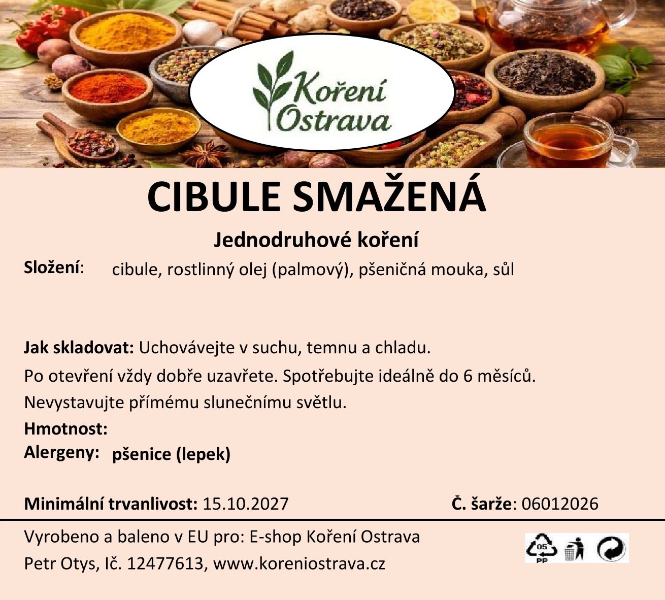 Cibule smažená (Allium cepa) je připravena z kvalitních cibulových plátků, které se po obalení v mouce smaží do zlatavé barvy. Výsledkem je křupavý a voňavý produkt s příjemně nasládlou chutí, připomínající domácí smaženou cibulku z pánve. Pochází z nizozemské produkce, která je známá šetrným zpracováním a stálou kvalitou.