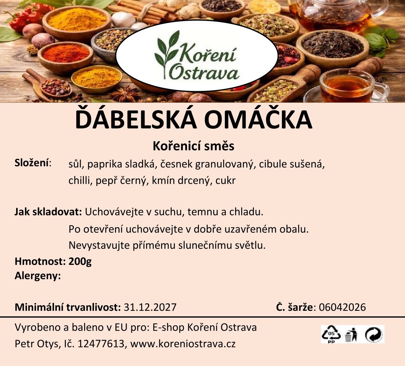 Vyrobeno a baleno v EU pro: E-shop Koření Ostrava,