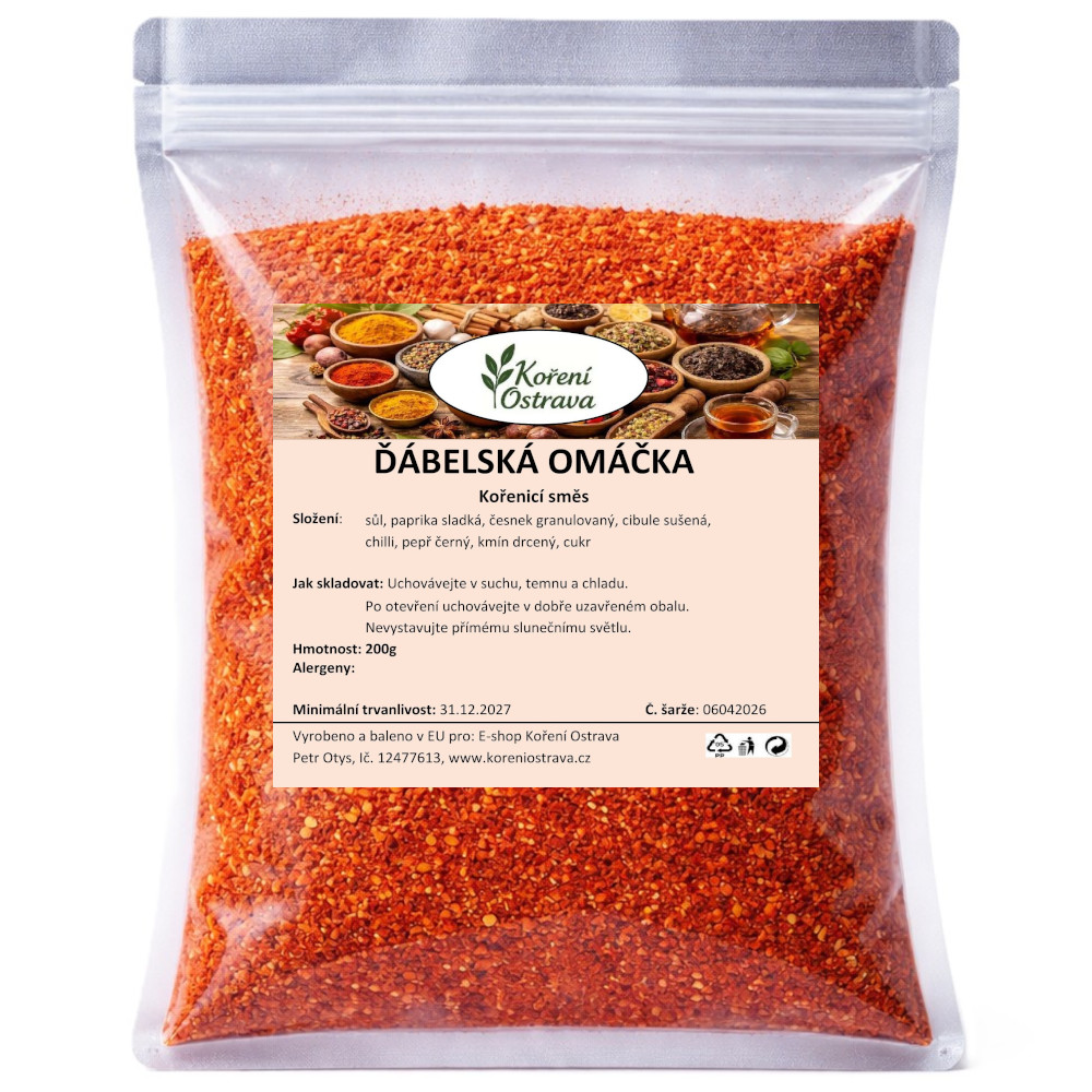 Směs na ďábelskou omáčku je výrazná paprikovo-česneková kombinace určená pro rychlou přípravu studené omáčky k smaženým jídlům. Základ tvoří paprika, česnek a cibule, které dodají omáčce plnou chuť, lehce pikantní tón a typický "hospodský" charakter. Díky vyváženému podílu soli je směs připravená tak, aby nebylo potřeba další dochucování.