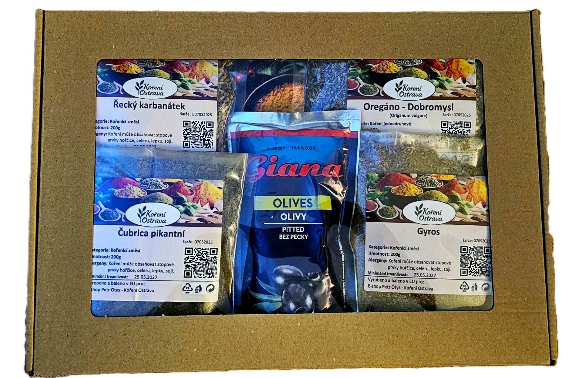 Dárkový balíček Poklady Řecka přináší vůni a chuť sluncem zalitého Středomoří. Kombinace oregana, čubrice, česneku a oliv dodá jídlům svěží, lehce kořeněný charakter typický pro řeckou kuchyni. Ideální pro gyros, saláty, ryby, pečenou zeleninu i brambory. Skvělý dárek pro všechny, kdo milují jednoduchou kuchyni plnou chuti a vůní.