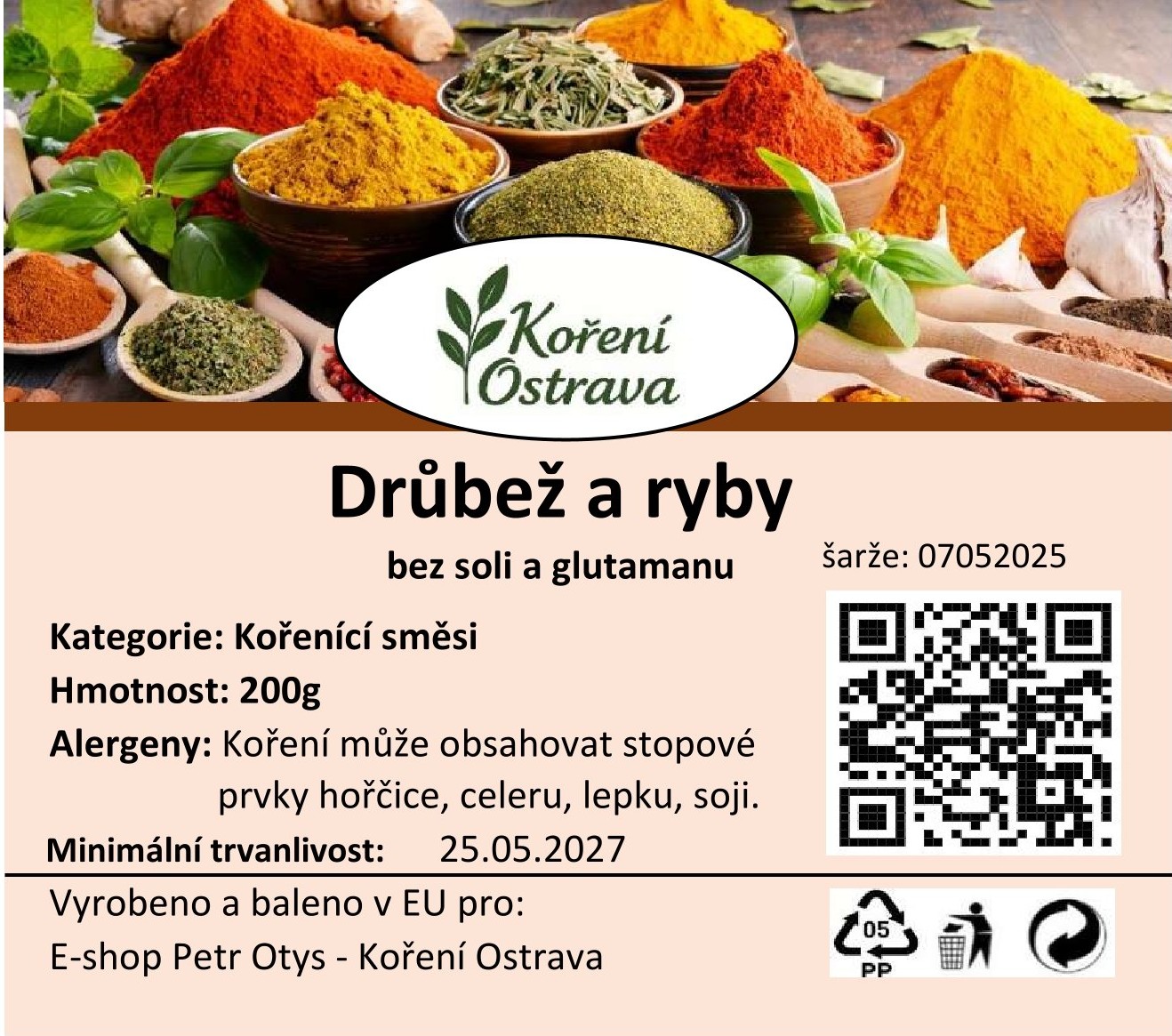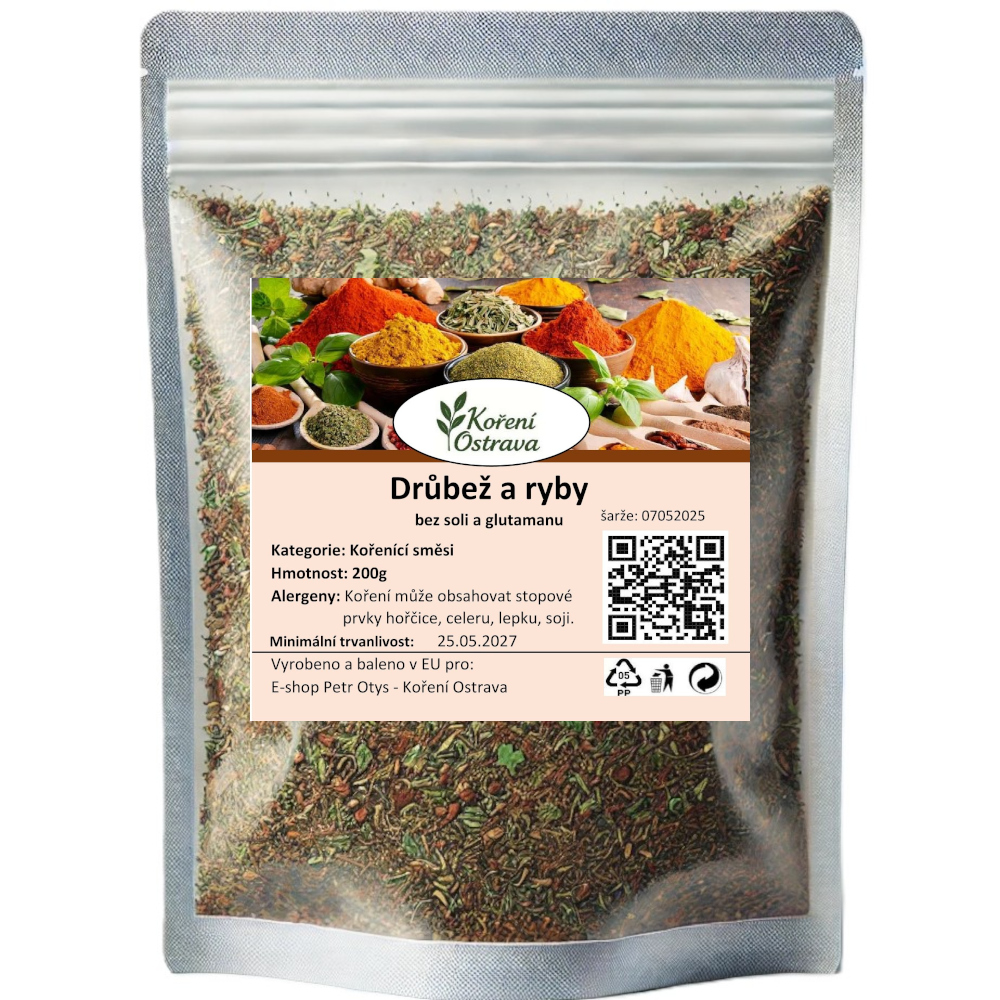 Směs koření "Drůbež a ryby" je speciální směs koření navržená pro dochucení pokrmů z drůbeže a ryb. Obvykle obsahuje různé druhy koření, které se hodí k těmto surovinám.