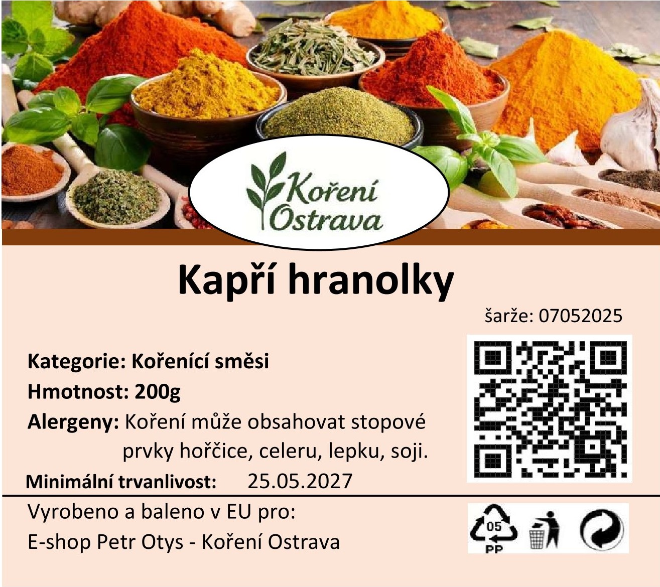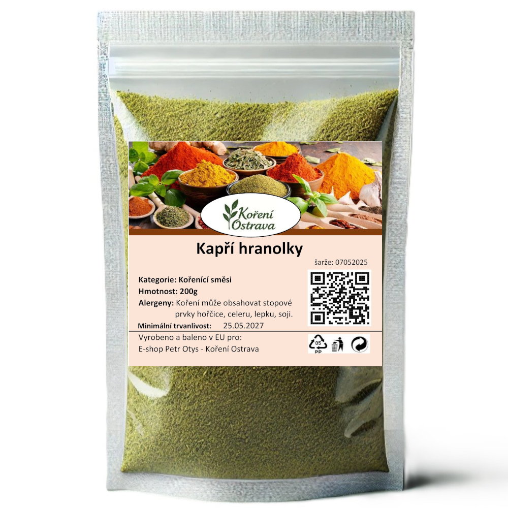 Speciálně namíchaná směs pro dochucení kapřích hranolků, filetů a dalších rybích pokrmů. Skvěle se hodí k obalovanému nebo pečenému kaprovi, ale i k jiným sladkovodním rybám. Lze ji použít do těstíčka, strouhanky, marinády nebo přímo na posypání rybího masa před přípravou. Ideální pro domácí i restaurační kuchyni.
