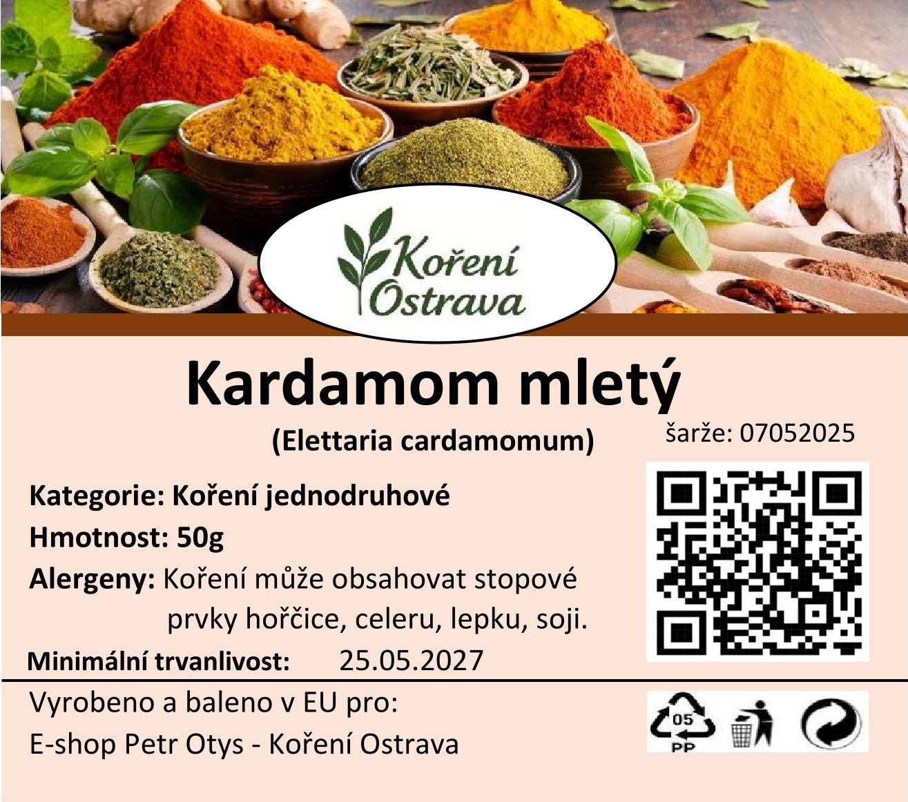 Kardamon mletý (Elettaria cardamomum) pochází z plodů tropické rostliny, která se nejvíce pěstuje v Guatemale a Indii. Zelené tobolky obsahují semínka, jež se po usušení melou na jemný prášek. Kardamon je ceněn pro svou jedinečnou chuť, která kombinuje nasládlé, citrusové a lehce eukalyptové tóny.