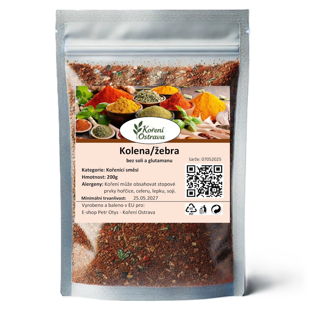 Směs koření Kolena / Žebra je speciální kořenící směs určená především na dochucení vepřových kolen, žebírek a dalších druhů masa připravovaných pečením, grilováním nebo pomalým dušením. Tato směs se běžně používá k marinování masa před tepelnou úpravou nebo jako dochucovadlo během vaření. Přesné složení se může lišit podle výrobce.