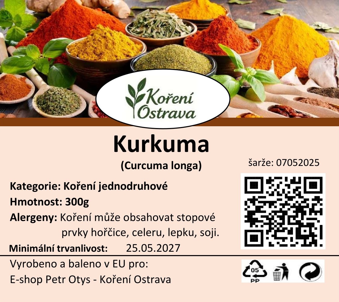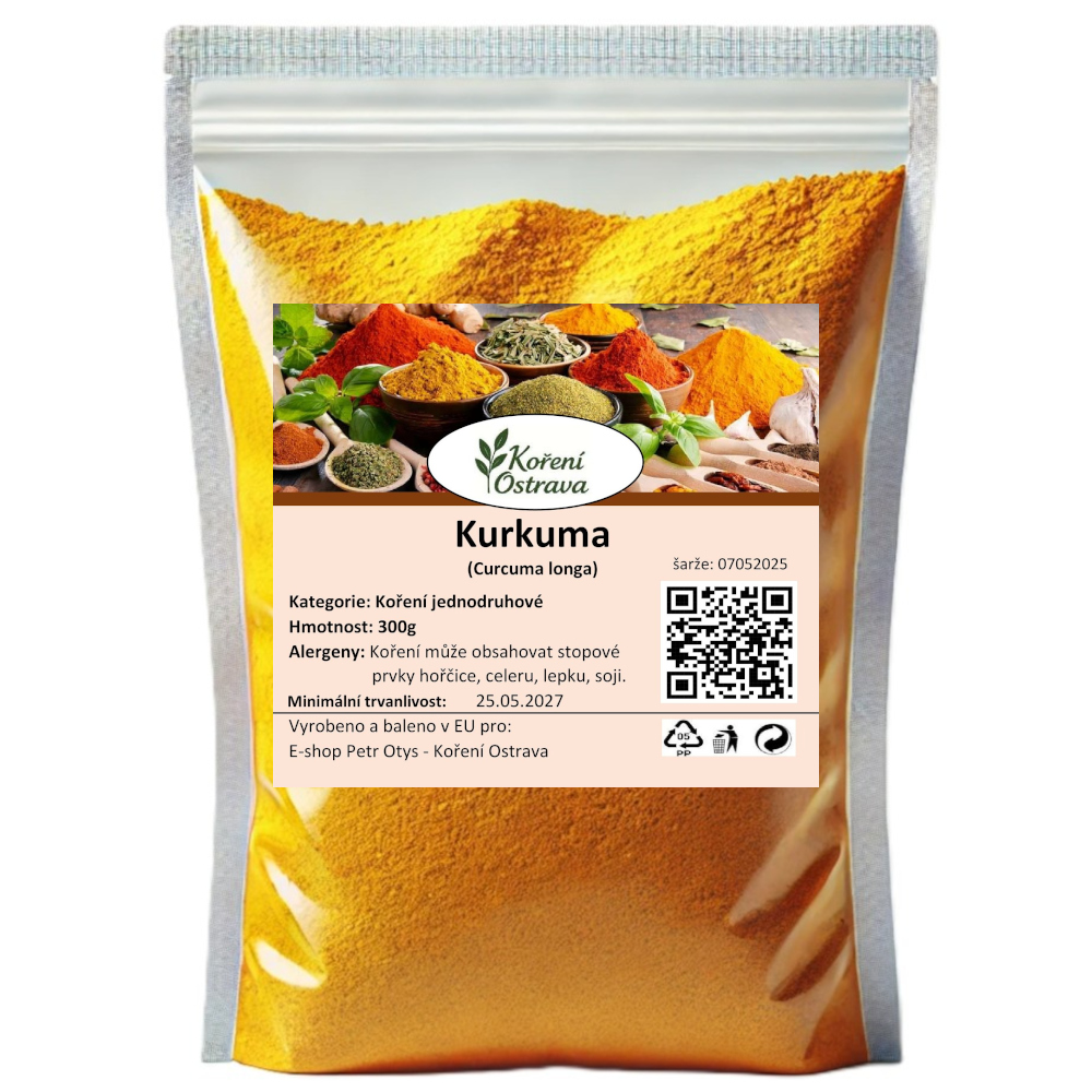 Kurkuma (Curcuma longa) pochází z jižní Asie, především z Indie, kde se pěstuje už tisíce let. Dnes je hlavním producentem stále Indie, ale pěstuje se i v dalších tropických oblastech. Kurkuma má výraznou žlutou barvu, jemně zemitou a lehce pepřovou chuť. Je základem mnoha kari směsí a oblíbená v asijské i světové kuchyni, nejen pro svou chuť, ale i barvící schopnosti.