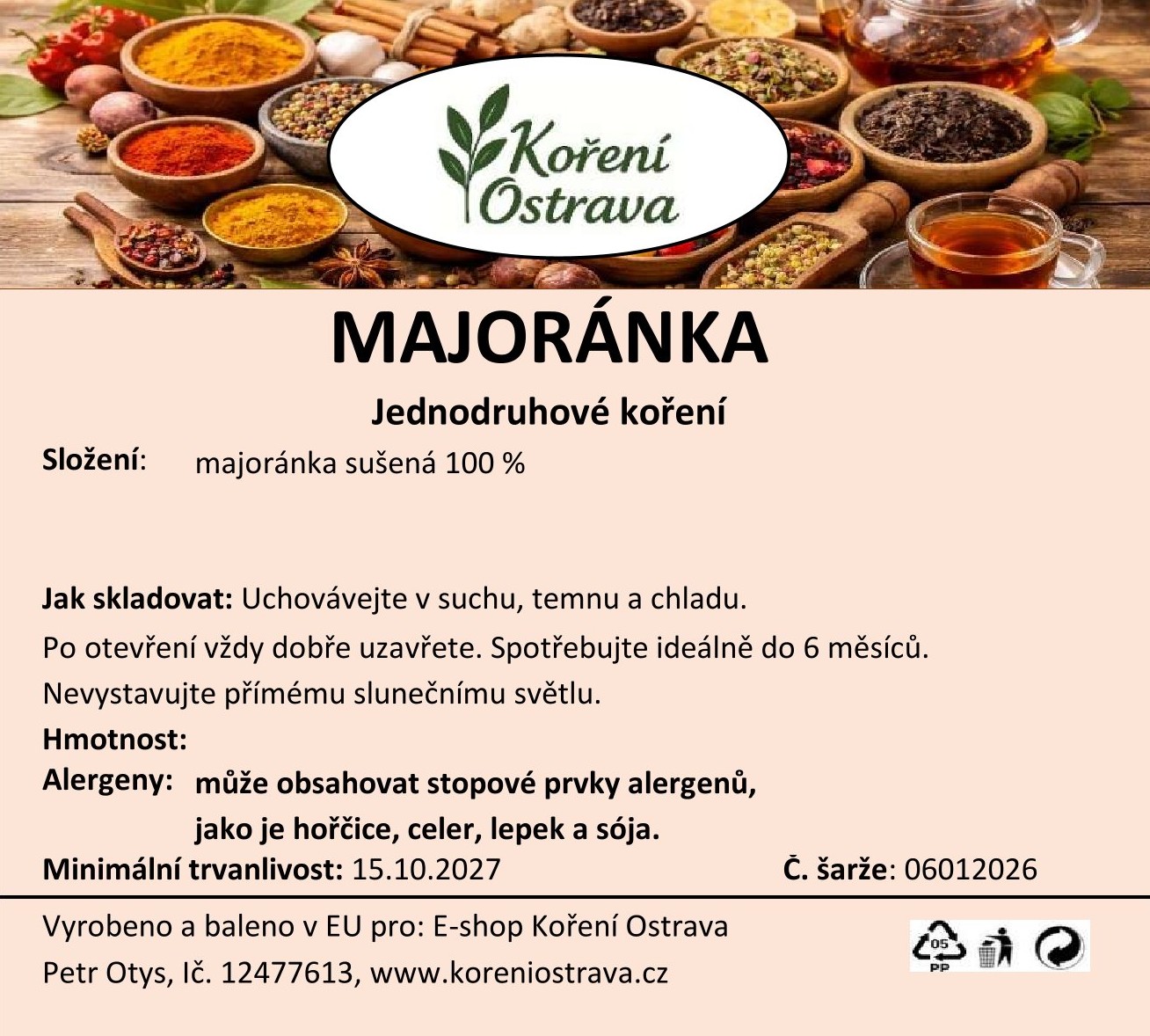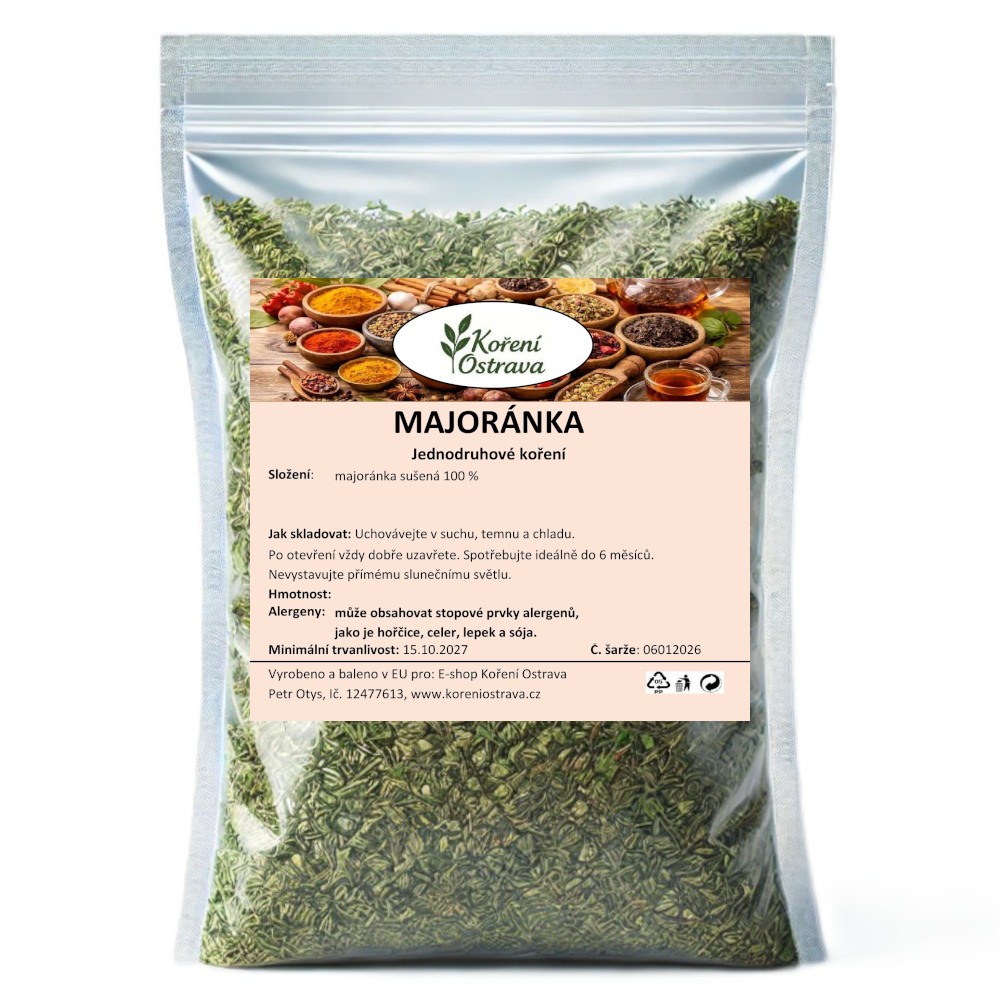 Majoránka (Origanum majorana) pochází z oblasti Středomoří a severní Afriky. Dnes se pěstuje v teplejších oblastech po celém světě. Sušená majoránka má jemnou, nasládlou a lehce kořeněnou chuť. Je tradiční součástí evropské kuchyně, zejména v polévkách, omáčkách, masových a bramborových pokrmech.