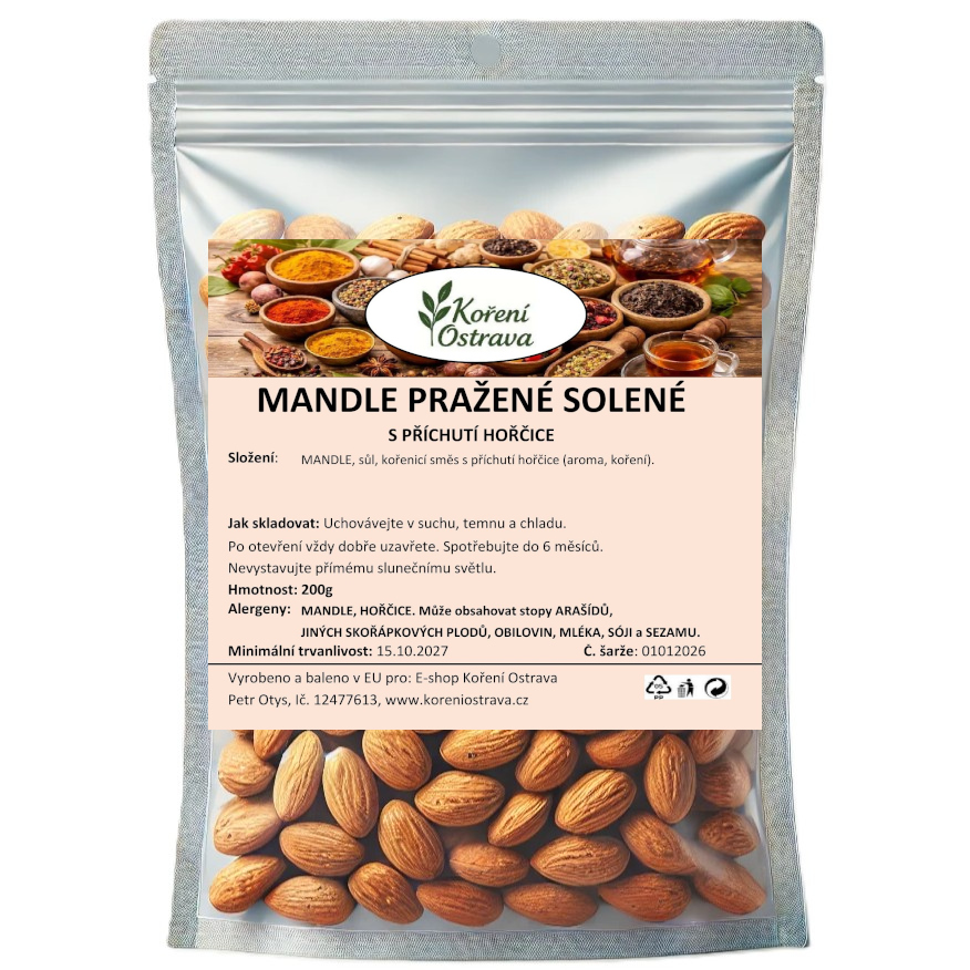 Popis a chuť: Mandle pražené solené s příchutí hořčice přinášejí unikátní chuťový zážitek, který nadchne všechny milovníky výrazných chutí. Kombinace jemně pražených mandlí, špetky soli a pikantního hořčičného aroma vytváří dokonalou harmonii, která v ústech příjemně zaujme. Každé sousto nabízí křupavost mandlového jádra a intenzivní hořčičnou chuť, která skvěle ladí s nápoji, jako je pivo či víno. Ideální volba pro chvíle, kdy chceš ochutnat něco netradičního a originálního.