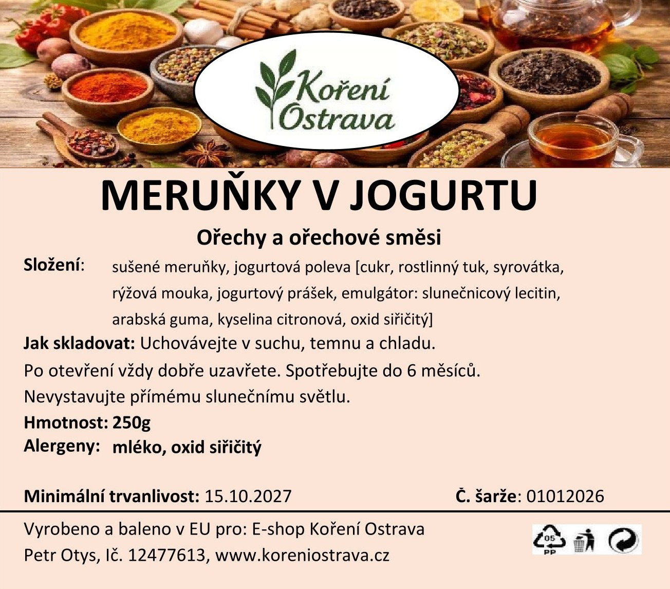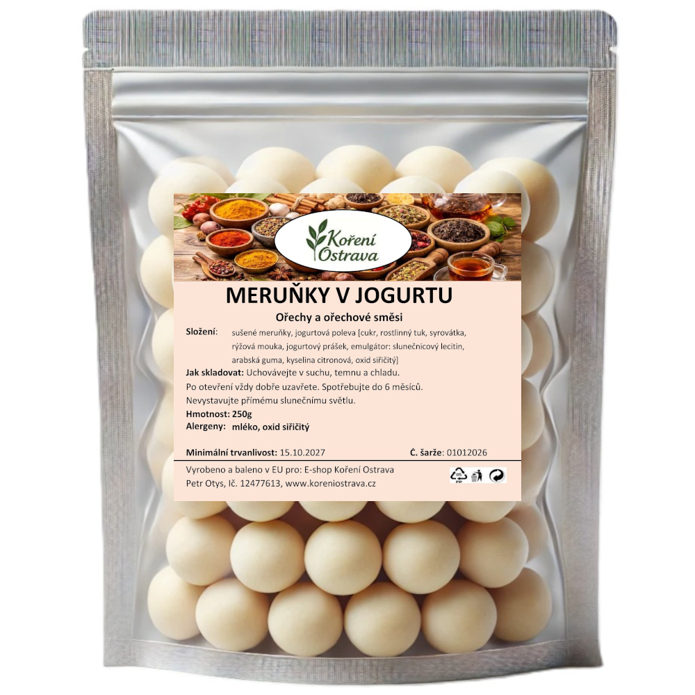 Popis a chuť: Meruňky v jogurtu přinášejí lahodný zážitek pro všechny, kteří milují ovocné sladkosti s jemným krémovým nádechem. Sušené meruňky si zachovávají svou přirozenou šťavnatost a sladkokyselou chuť, která se nádherně snoubí s jemně sladkou a krémovou jogurtovou polevou. Každé sousto nabízí dokonalou harmonii chutí, která tě potěší při samostatném mlsání, v müsli, nebo jako originální doplněk k dezertům či snídaňovým směsím.