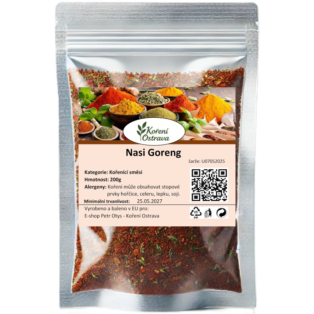 Použití: Tradiční asijská směs určená pro přípravu smažené rýže ve stylu indonéského "nasi goreng". Výborně se hodí k restování rýže s masem, krevetami, zeleninou nebo vejcem. Lze ji využít i jako koření do nudlových pokrmů, wok jídel nebo rychlých asijských směsí z pánve.