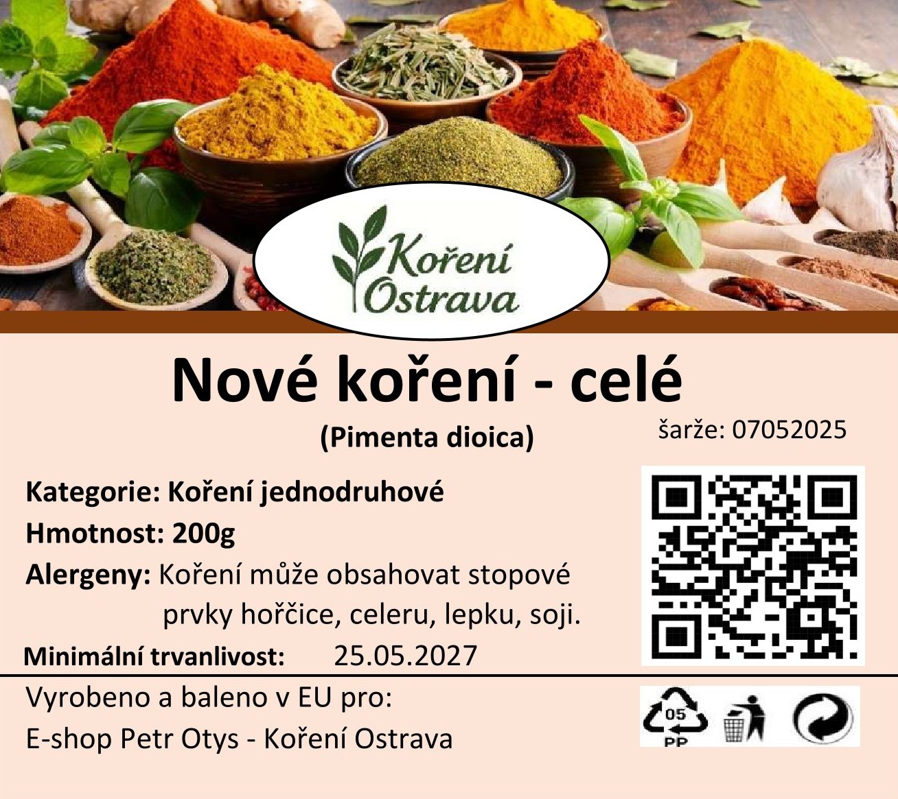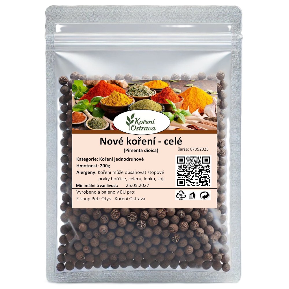 Nové koření (Pimenta dioica) pochází z tropických oblastí Střední Ameriky a Karibiku. Dnes se pěstuje také v tropických oblastech Jižní Ameriky a Asie. Celé kuličky nového koření mají výraznou, kořeněnou a mírně sladkou chuť. Používají se v omáčkách, marinádách, pečených pokrmech, polévkách a některých nápojích, jako je punč.
