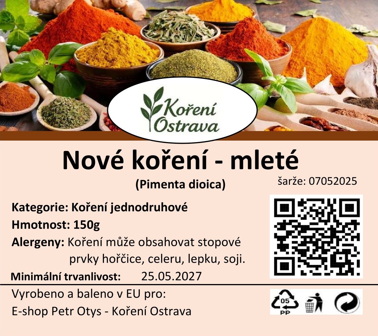 Nové koření (Pimenta dioica) pochází z tropických oblastí Střední Ameriky a Karibiku. Dnes se pěstuje také v tropických oblastech Jižní Ameriky a Asie. Mleté nové koření má výraznou, kořeněnou, lehce sladkou chuť. Je oblíbené v omáčkách, marinádách, pečených pokrmech, polévkách nebo při přípravě nápojů, jako je punč.