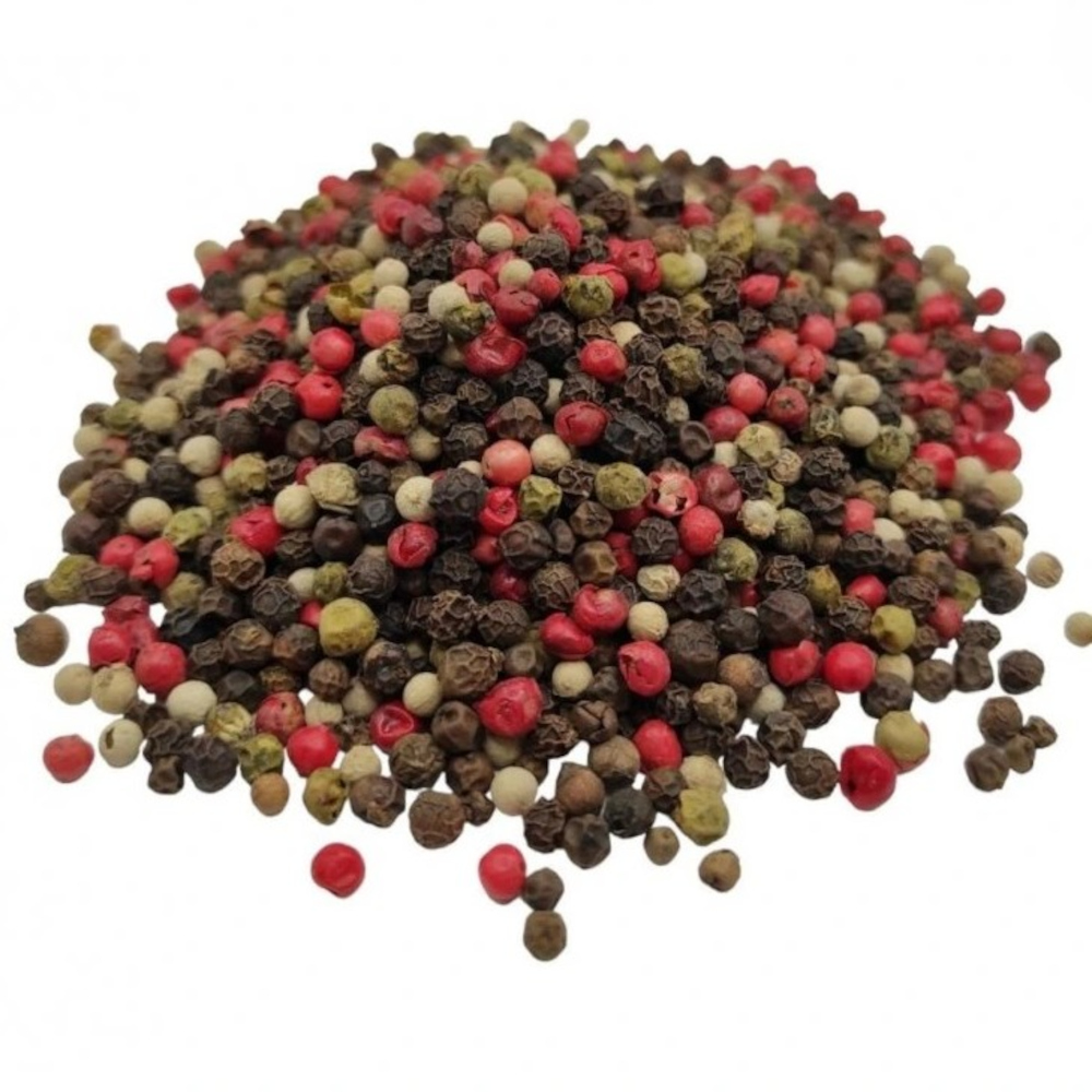 Barevný pepř (Piper nigrum) pochází z tropických oblastí Indie a dalších částí jihovýchodní Asie. Barevný pepř je směsí černého, bílého, zeleného a červeného pepře, který se získává z nezralých plodů pepřovníku a různě se zpracovává. Celé kuličky barevného pepře mají výraznou, pálivou chuť s jemně květinovými tóny. Používá se k dochucování polévek, omáček, masových pokrmů a salátů.