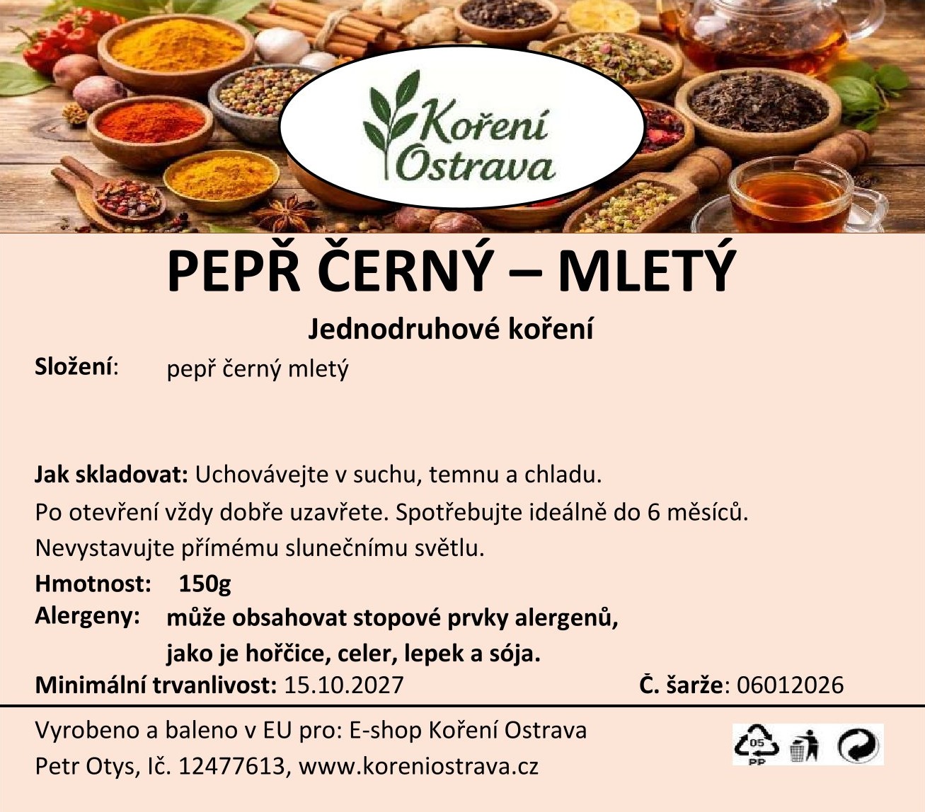 Původ koření: Pepř černý - mletý