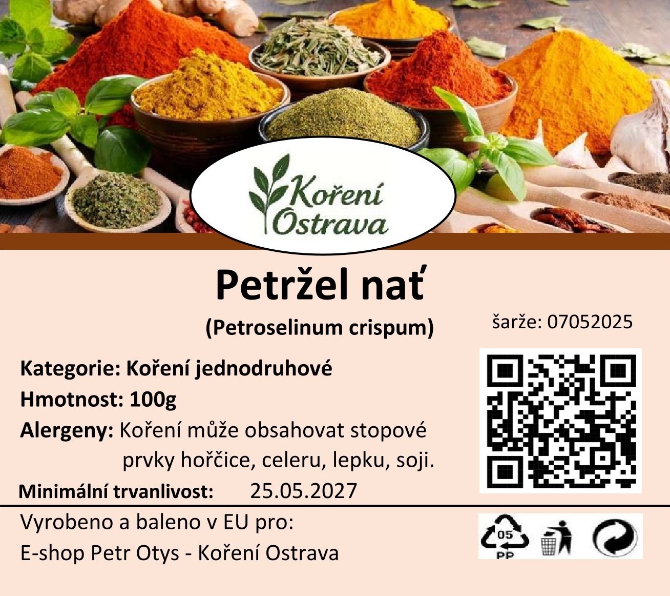 Petržel (Petroselinum crispum) pochází z oblasti Středomoří, ale dnes se pěstuje po celém světě. Petrželová nať má svěží, jemně kořeněnou chuť s nádechem citrusů. Používá se především čerstvá, ale i sušená, v polévkách, omáčkách, salátech, jako ozdoba na jídla nebo do různých příloh. Je to oblíbené koření pro svou svěžest a univerzálnost v kuchyni.