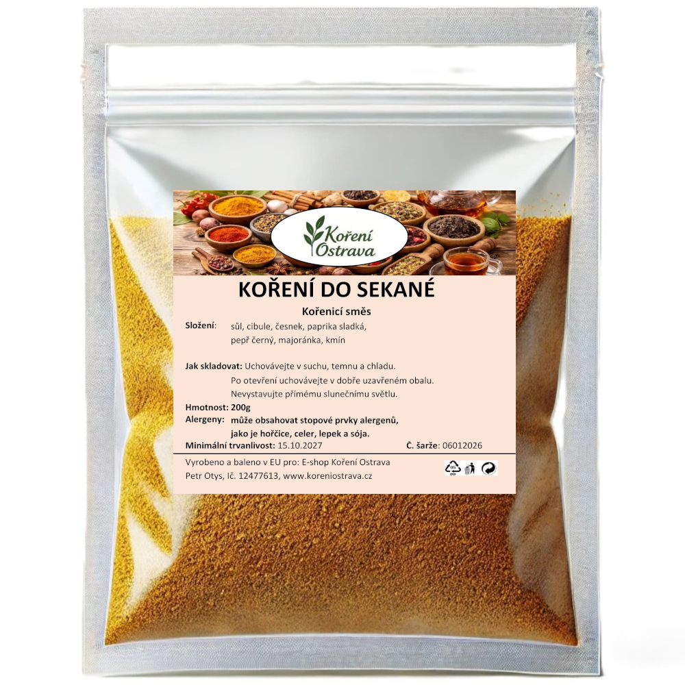 Použití: Směs určená pro přípravu domácí sekané, karbanátků, masových kuliček nebo masové nádivky. Skvěle se hodí do směsí z mletého vepřového, hovězího nebo drůbežího masa. Využitelná také jako dochucení masových rolád či pečeného mletého masa.