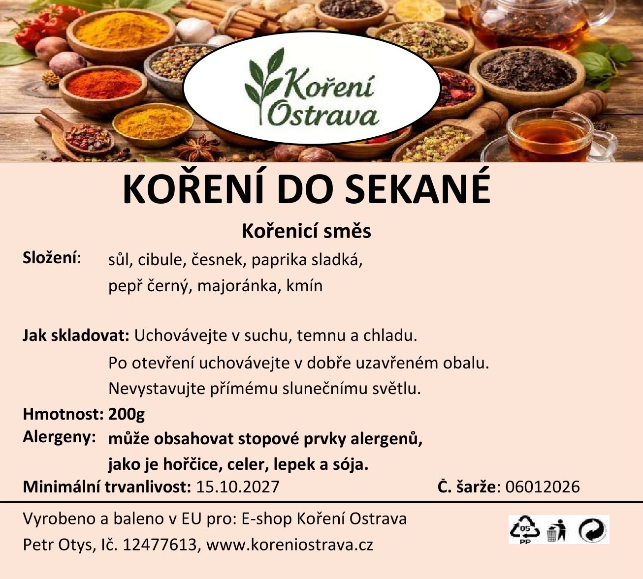 Vyrobeno a baleno v EU pro: E-shop Koření Ostrava