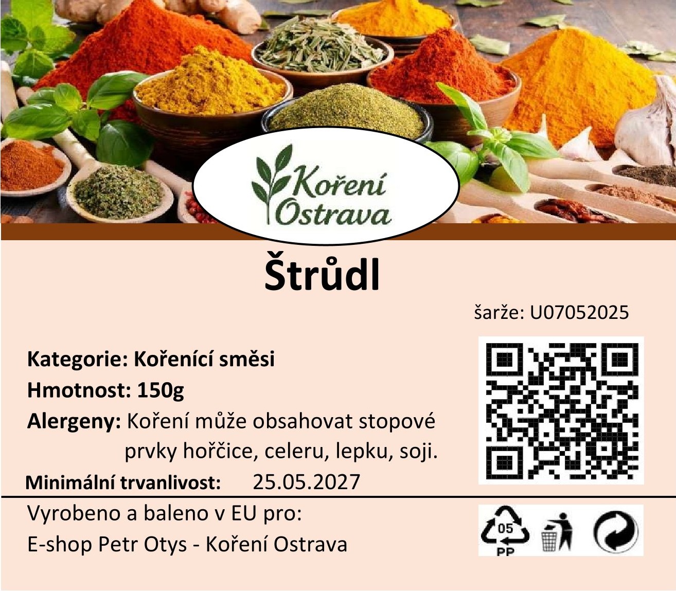 Použití: Sladká směs určená pro dochucení jablečného štrúdlu, koláčů, buchet, ovocných náplní, tvarohových dezertů nebo domácí granoly. Lze ji přidat i do ovesné kaše, smoothie nebo na pečená jablka. Výborně doplňuje chuť pečiva v podzimním a zimním období.