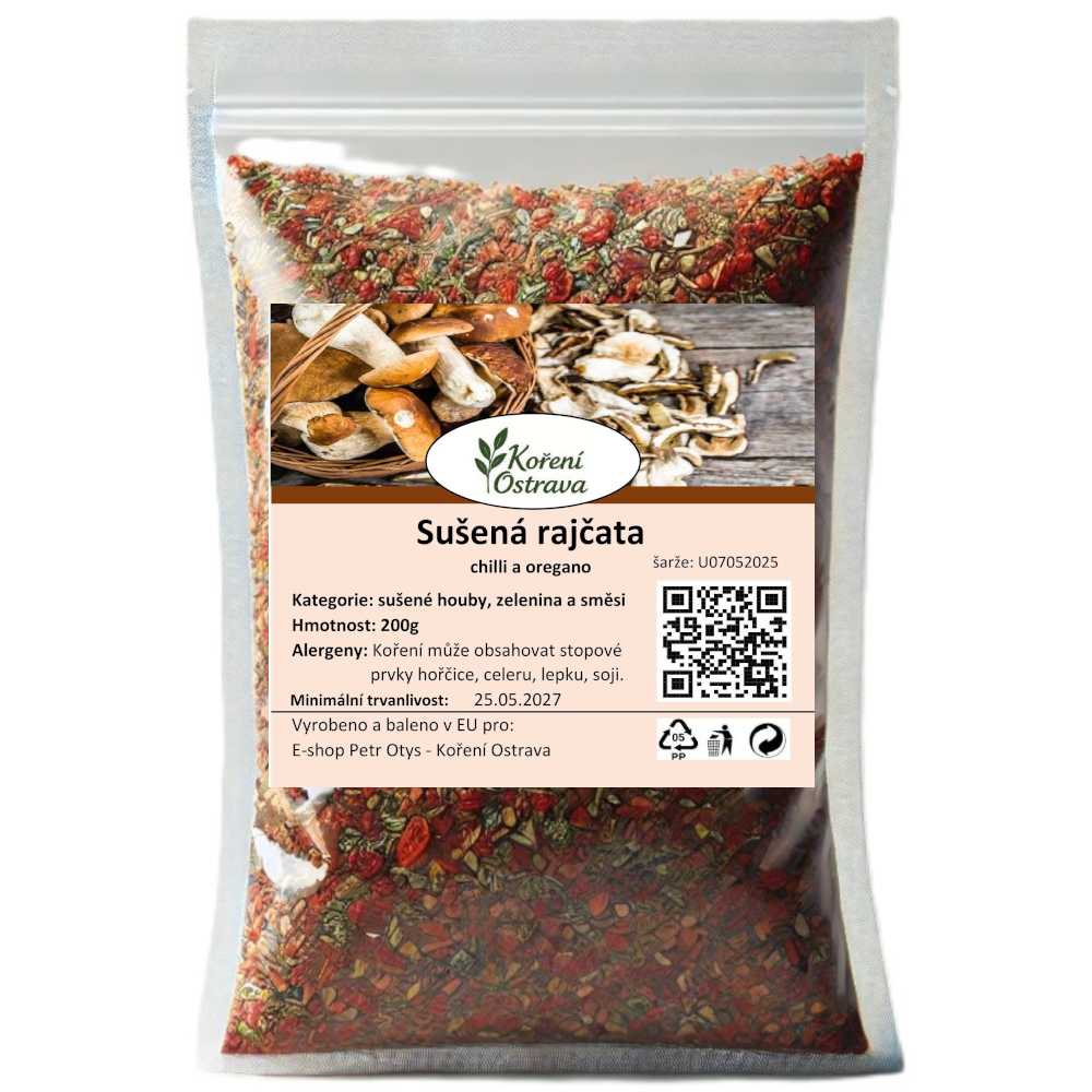 Tato směs sušených rajčat s jemně pálivým chilli a voňavým oreganem je ideální pro všechny, kdo si chtějí zpestřit vaření výraznou a aromatickou chutí. Skvělé do těstovin, omáček, pizzy nebo do salátů. Ocení ji každý, kdo miluje pikantní jídla se středomořským nádechem.