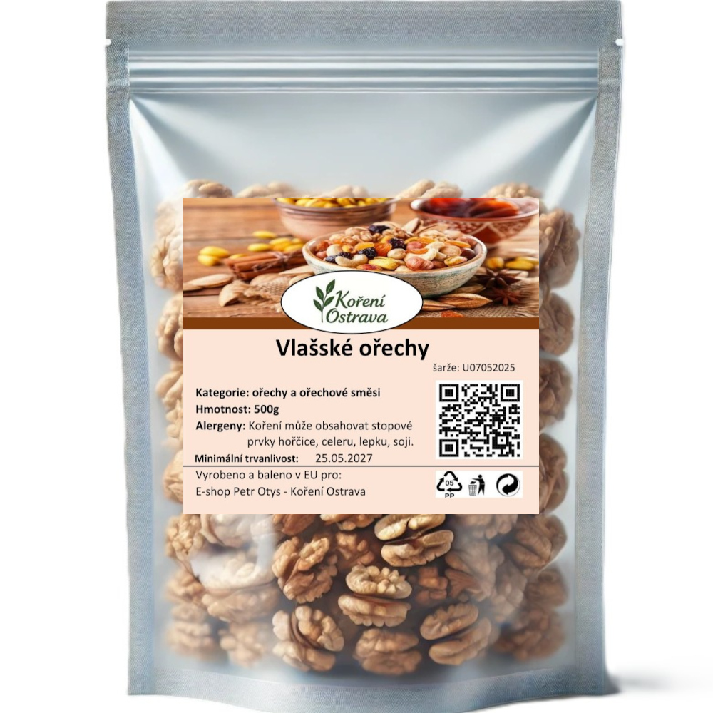 Popis a chuť: Vlašské ořechy jsou dokonalou volbou pro všechny, kteří si chtějí dopřát přírodní chuť a kvalitní surovinu plnou živin. Jejich jemně sladká, máslová chuť s charakteristickým nahořklým tónem se skvěle hodí do sladkých i slaných jídel, na pečení, do salátů nebo jako rychlá, zdravá svačina. Každé sousto nabízí plnou ořechovou chuť a přirozenou křupavost, která potěší všechny gurmány.